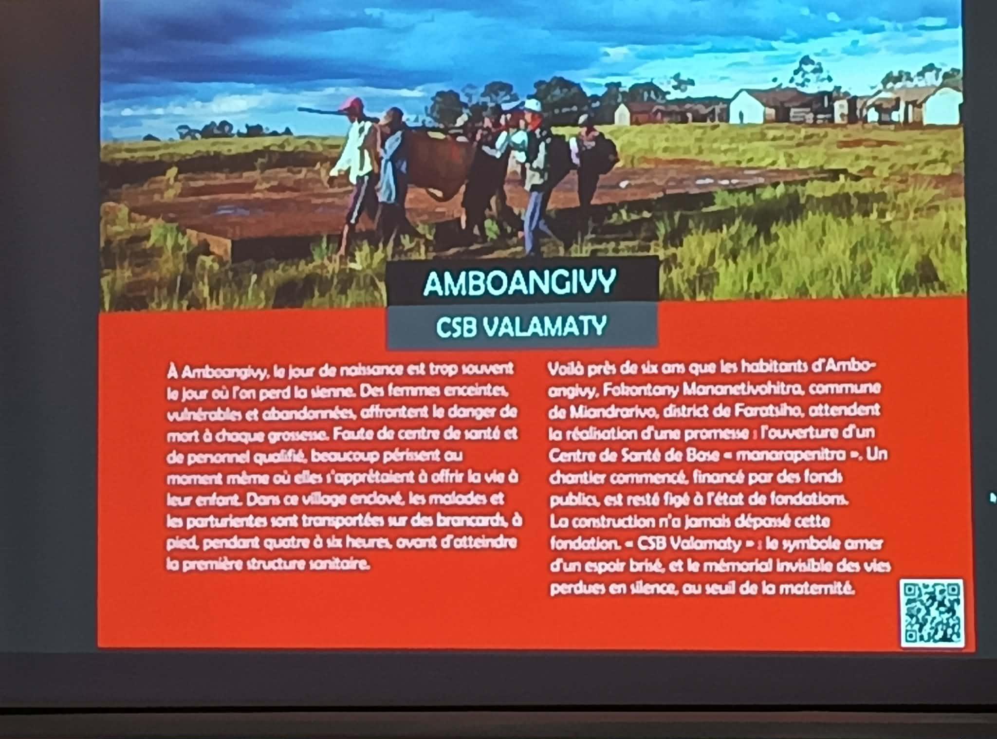 The documentary film recounts the story of a basic health center, “manarapenitra” (standard compliant) promised during presidential election in 2018 in Amboangivy, in the district of Faratsiho. Six years later, only the foundations of this publicly funded project remain. Meanwhile, residents, particularly pregnant women, face long walks to reach the nearest hospital, some never arriving. By exposing these realities, Malina's journalists remind us that, beyond official pronouncements, delays in public infrastructure have a human cost.